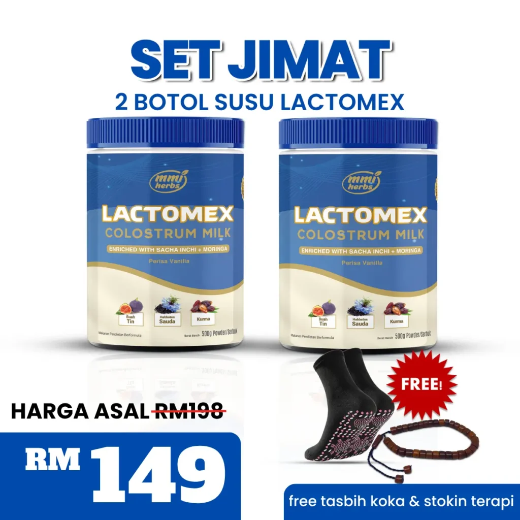 Lactomex ialah susu kolostrum premium keluaran MMI Herbs yang diformulasikan khas untuk menyokong tenaga, imuniti ,kesihatan usus dan penghadaman. Ia menggabungkan kolostrum asli, protein whey, monk fruit, gam arab dan saffron.