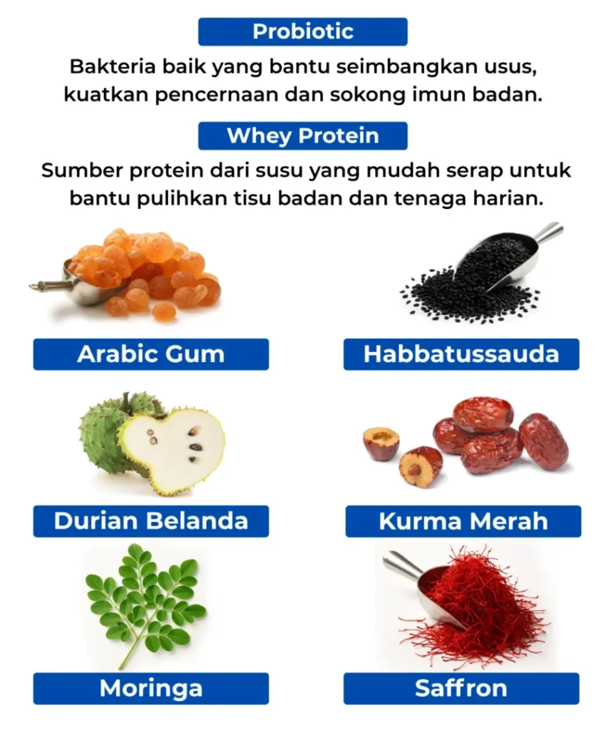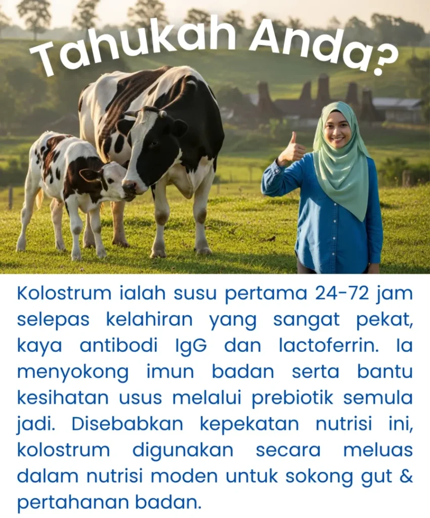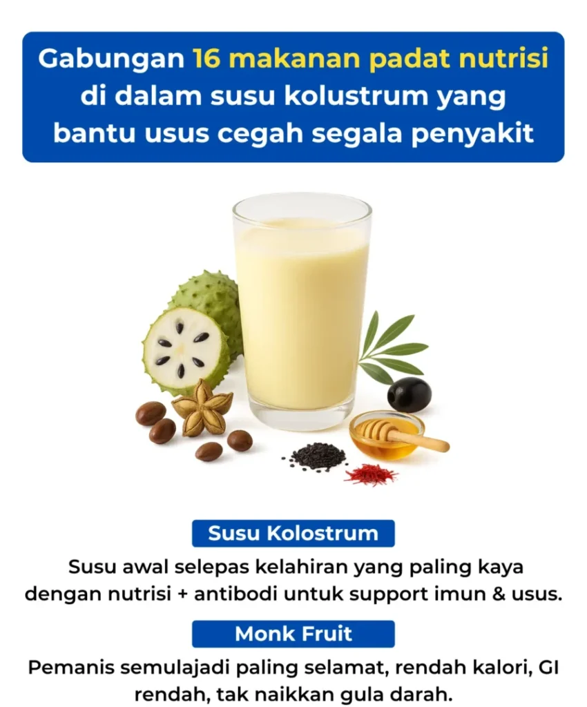 Gabungan Kolostrum, Whey Protein, Probiotik & Monk Fruit Untuk Usus Sihat, Tenaga Stabil & Imun Semulajadi!